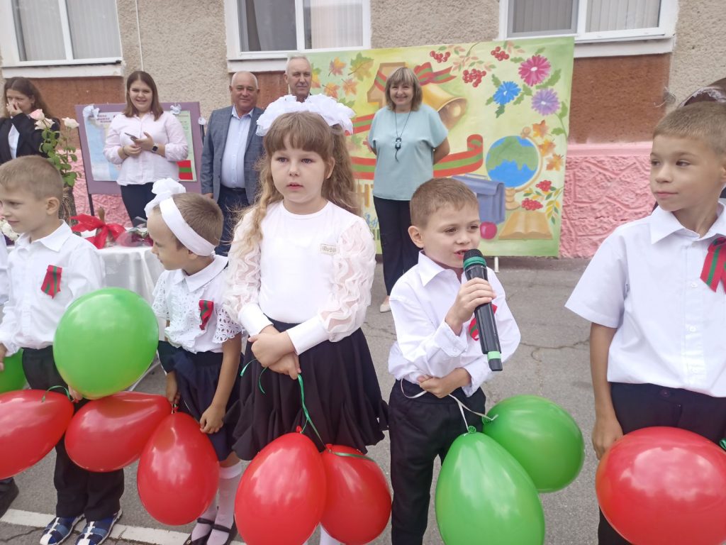 В школьную семью влились 11 первоклассников. Гости вручили им подарки и напутствовали добрыми словами. Выпускники дали свой наказ первоклассникам, выразили слова благодарности и любви педагогам, исполнили трогательный танец «Мы приднестровцы». После линейки в школе прошел первый урок на тему «История приднестровского народа».